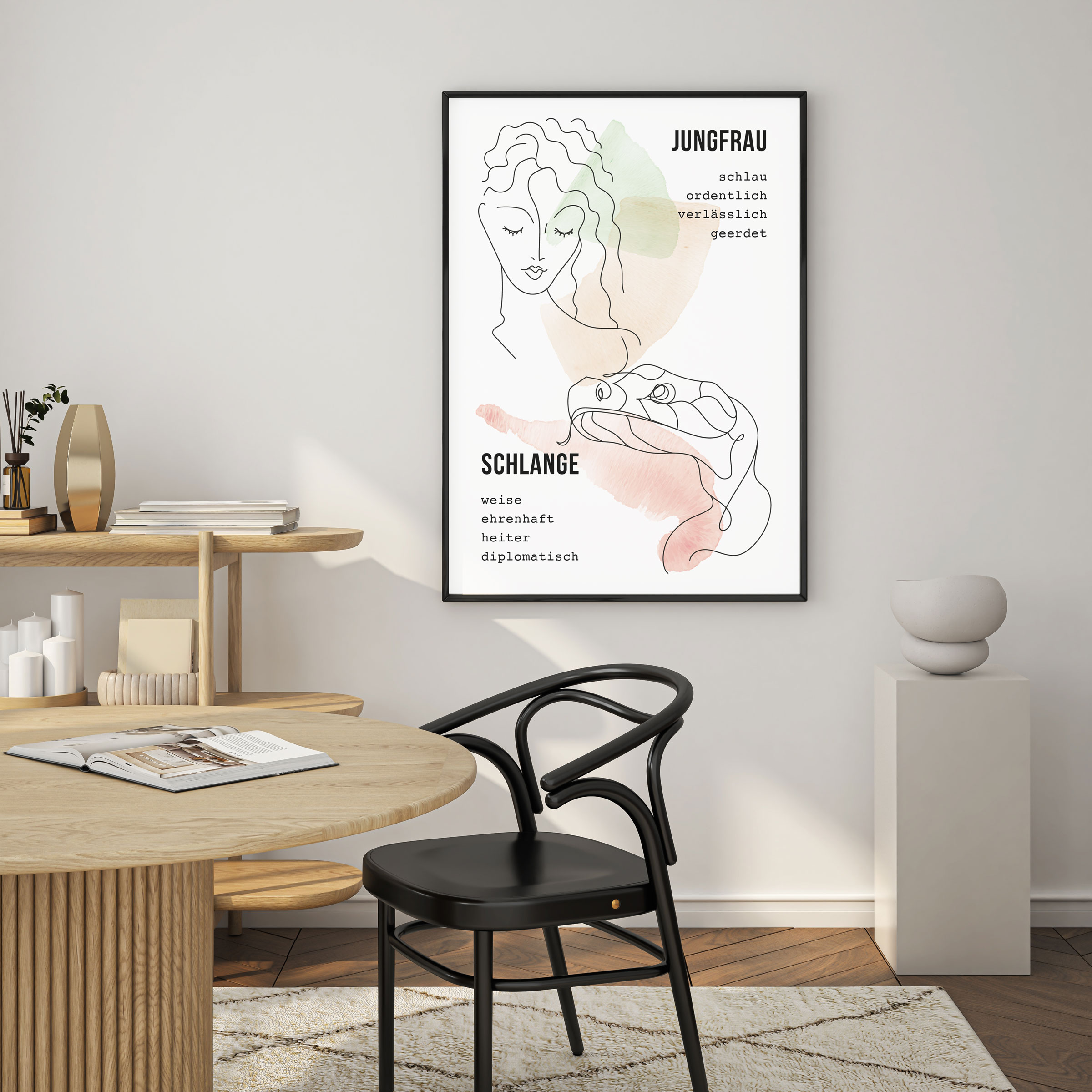 Jedes Poster erzählt eine individuelle Geschichte, indem es westliche und chinesische Sternzeichen miteinander vereint. Die einzigartigen Eigenschaften und Stärken jedes Zeichens werden in kunstvollen Illustrationen zum Leben erweckt. Abgerundet durch die Kraft-Farben der Sternzeichen entsteht ein ästhetisches Gesamtbild, das jeden Raum bereichert. Unsere Poster sind ideal für all jene, die mehr als nur Dekoration suchen – sie bieten ein bedeutungsvolles Kunstwerk, das den persönlichen Charakter widerspiegelt.